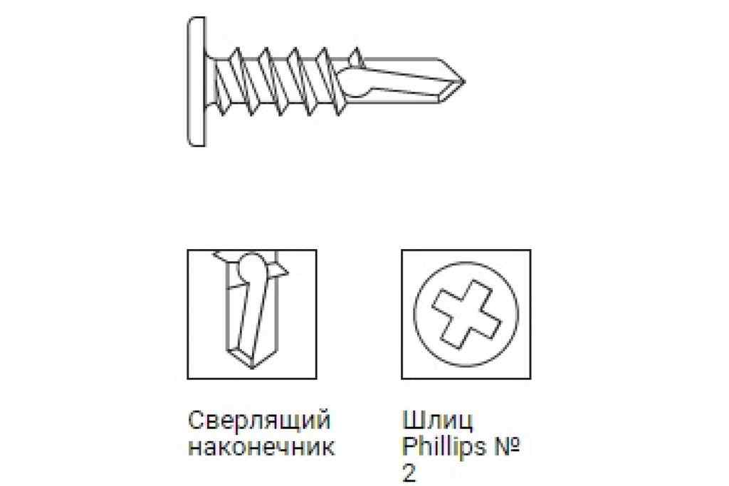 • Плоская головка самонарезающего винта (1,0 мм) позволит монтировать листовые материалы на конструкцию без дополнительной обработки
