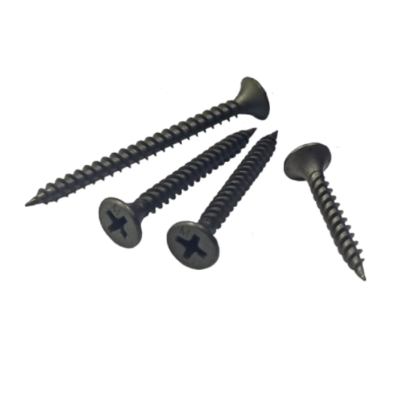 Метиз представляет собой классический остроконечный шуруп с резьбой по всему стержню. Имеет фосфатное покрытие, надёжно защищающее от коррозии, плоскую шляпку с крестообразным шлицем Phillips № 2 и маркировкой "М". Подходит для потайного монтажа — может быть утоплен полностью в поверхность скрепляемых материалов. Двухзаходная резьба на метизе обеспечивает более легкий и быстрый монтаж.