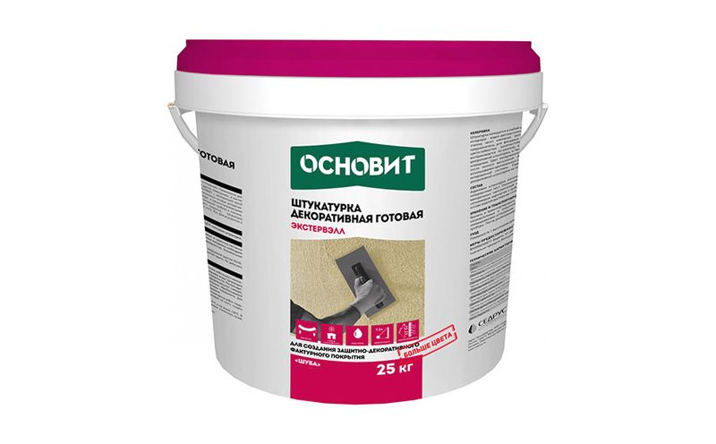 Готовая к применению штукатурка декоративная силикатная Основит Экстервэлл ОSt фактура «Короед» предназначена для создания тонкослойного декоративно-защитного покрытия при отделке различных поверхностей, в т.ч. при устройстве системы фасадной теплоизоляции Основит.